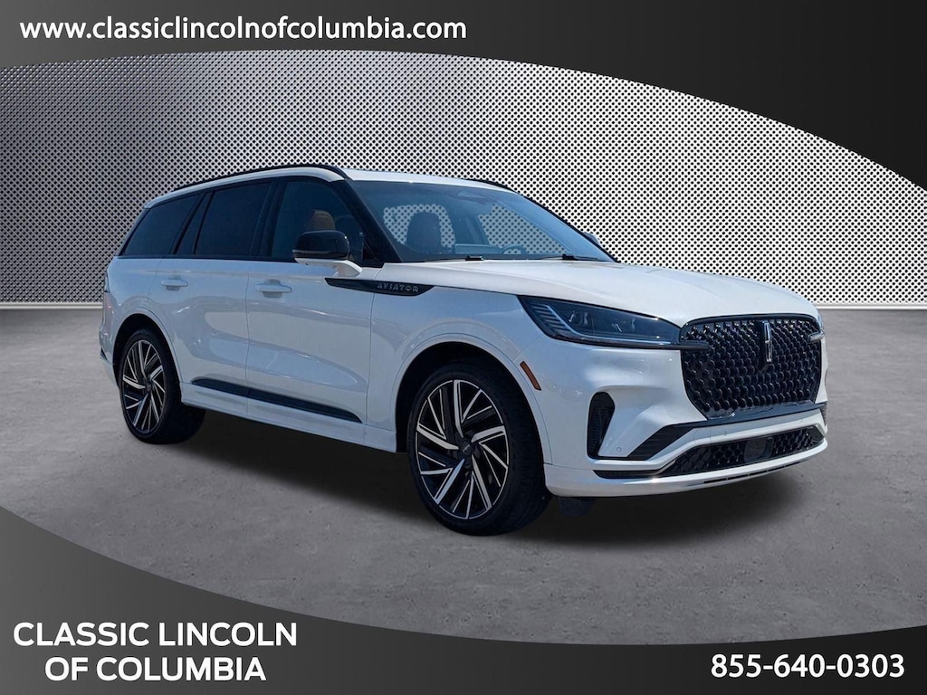Extended Service Programs Available, 28 Speakers, 30-Way Perfect Position Seats w/Active Motion, 3rd row seats: split-bench, 4-Wheel Disc Brakes, ABS brakes, Adaptive suspension, Air Conditioning, Alloy wheels, AM/FM radio: SiriusXM, Apple CarPlay/Android Auto, Audio memory, Auto High-beam Headlights, Auto-dimming door mirrors, Auto-dimming Rear-View mirror, Automatic temperature control, Brake assist, Bumpers: body-color, Compass, Delay-off headlights, Door auto-latch, Driver door bin, Driver vanity mirror, Dual front impact airbags, Dual front side impact airbags, Electronic Stability Control, Emergency communication system: SYNC 4 911 Assist, Four wheel independent suspension, Front anti-roll bar, Front Bucket Seats, Front Center Armrest, Front dual zone A/C, Front reading lights, Fully automatic headlights, Garage door transmitter, Head restraints memory, Heads-Up Display, Heated door mirrors, Heated front seats, Heated rear seats, Heated steering wheel, HVAC memory, Illuminated entry, Knee airbag, Leather steering wheel, Lincoln Digital Experience, Low tire pressure warning, Memory seat, Navigation system: Connected Navigation (1-year trial), Occupant sensing airbag, Outside temperature display, Overhead airbag, Overhead console, Panic alarm, Passenger door bin, Passenger vanity mirror, Power adjustable front head restraints, Power door mirrors, Power driver seat, Power Liftgate, Power moonroof: Panoramic Vista Roof, Power passenger seat, Power steering, Power windows, Radio data system, Radio: Revel Ultima 3D Audio System w/28 Speakers, Rain sensing wipers, Rear air conditioning, Rear anti-roll bar, Rear audio controls, Rear dual zone A/C, Rear reading lights, Rear window defroster, Rear window wiper, Remote keyless entry, Roof rack: rails only, Savannah Leather Heated/Ventilated Seats (76A), Security system, SiriusXM, Speed control, Speed-Sensitive Wipers, Split folding rear seat, Spoiler, Steering wheel memory, Steering wheel mounted A/C controls, Steering wheel mounted audio controls, Tachometer, Telescoping steering wheel, Tilt steering wheel, Traction control, Trip computer, Turn signal indicator mirrors, Variably intermittent wipers, Ventilated front seats, Ventilated rear seats, Wheels: 22 Bright-Machined Aluminum.2025 Lincoln Aviator Black Label White AWD 10-Speed Automatic 3.0L V6Drivers in the greater Columbia SC rely on us for their next new or Lincoln Certified Pre-owned vehicle and automotive needs because we treat them like family. Customers make the trip from Lexington, Orangeburg, and Sumter because we are the new Lincoln dealership in the area that not only provides an array of quality products and services, but customer care that is unmatched! Here, at the Classic Lincoln of Columbia deal, you can count on the integrity of our Lincoln Certified Pre-owned vehicle collection.While every reasonable effort is made to ensure the accuracy of this information, it is the customers responsibility to verify price, vehicle equipment and availability with Classic Lincoln of Columbia. Price shown does include $699.00 closing fee but not applicable taxes, tag fees, and dealer installed accessories.