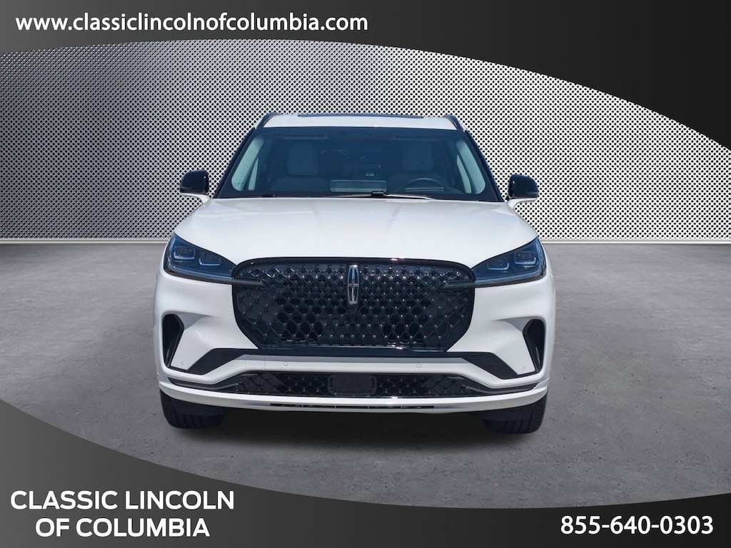 Extended Service Programs Available, 14 Speakers, 3rd row seats: split-bench, 4-Wheel Disc Brakes, 40/Mini Console/40 Dual Captain's Chairs, ABS brakes, Adaptive suspension, Air Conditioning, Alloy wheels, AM/FM radio: SiriusXM, Apple CarPlay/Android Auto, Audio memory, Auto High-beam Headlights, Auto-dimming door mirrors, Auto-dimming Rear-View mirror, Automatic temperature control, Brake assist, Bumpers: body-color, Compass, Delay-off headlights, Driver door bin, Driver vanity mirror, Dual front impact airbags, Dual front side impact airbags, Electronic Stability Control, Four wheel independent suspension, Front anti-roll bar, Front Bucket Seats, Front Center Armrest, Front dual zone A/C, Front reading lights, Fully automatic headlights, Garage door transmitter, Heads-Up Display, Heated door mirrors, Heated front seats, Heated steering wheel, HVAC memory, Illuminated entry, Knee airbag, Leather steering wheel, Lincoln BlueCruise Equipped (4-Years Included), Lincoln Digital Experience, Low tire pressure warning, Memory seat, Navigation system: Connected Navigation (1-year trial), Occupant sensing airbag, Outside temperature display, Overhead airbag, Overhead console, Panic alarm, Passenger door bin, Passenger vanity mirror, Power door mirrors, Power driver seat, Power Liftgate, Power moonroof: Panoramic Vista Roof, Power passenger seat, Power steering, Power windows, Premium Lthr Heated/Ventilated Fnt Captain's Chairs, Radio data system, Radio: Revel Audio System w/14 Speakers, Rain sensing wipers, Rear air conditioning, Rear anti-roll bar, Rear audio controls, Rear dual zone A/C, Rear reading lights, Rear window defroster, Rear window wiper, Remote keyless entry, Security system, SiriusXM, Speed control, Speed-Sensitive Wipers, Split folding rear seat, Spoiler, Steering wheel memory, Steering wheel mounted A/C controls, Steering wheel mounted audio controls, Tachometer, Telescoping steering wheel, Tilt steering wheel, Traction control, Trip computer, Turn signal indicator mirrors, Variably intermittent wipers, Ventilated front seats, Wheels: 21" Bright-Machined Aluminum.