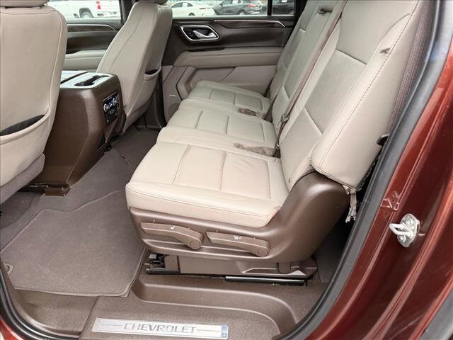 This 2022 Chevrolet Suburban LT is a one owner vehicle with 109,555 miles. Finished in Auburn Metallic with a Jet Black leather interior, this Suburban offers full size SUV comfort, strong V8 performance, and versatile three row seating, making it an excellent option for families, long distance travel, or towing.