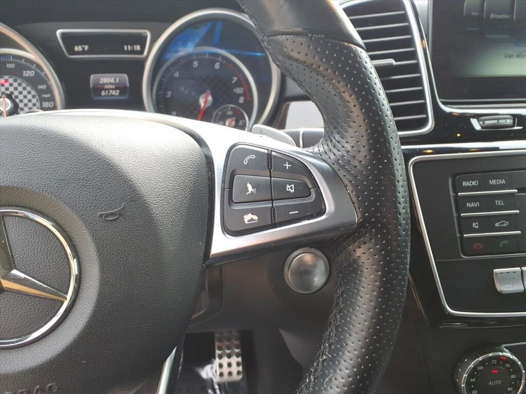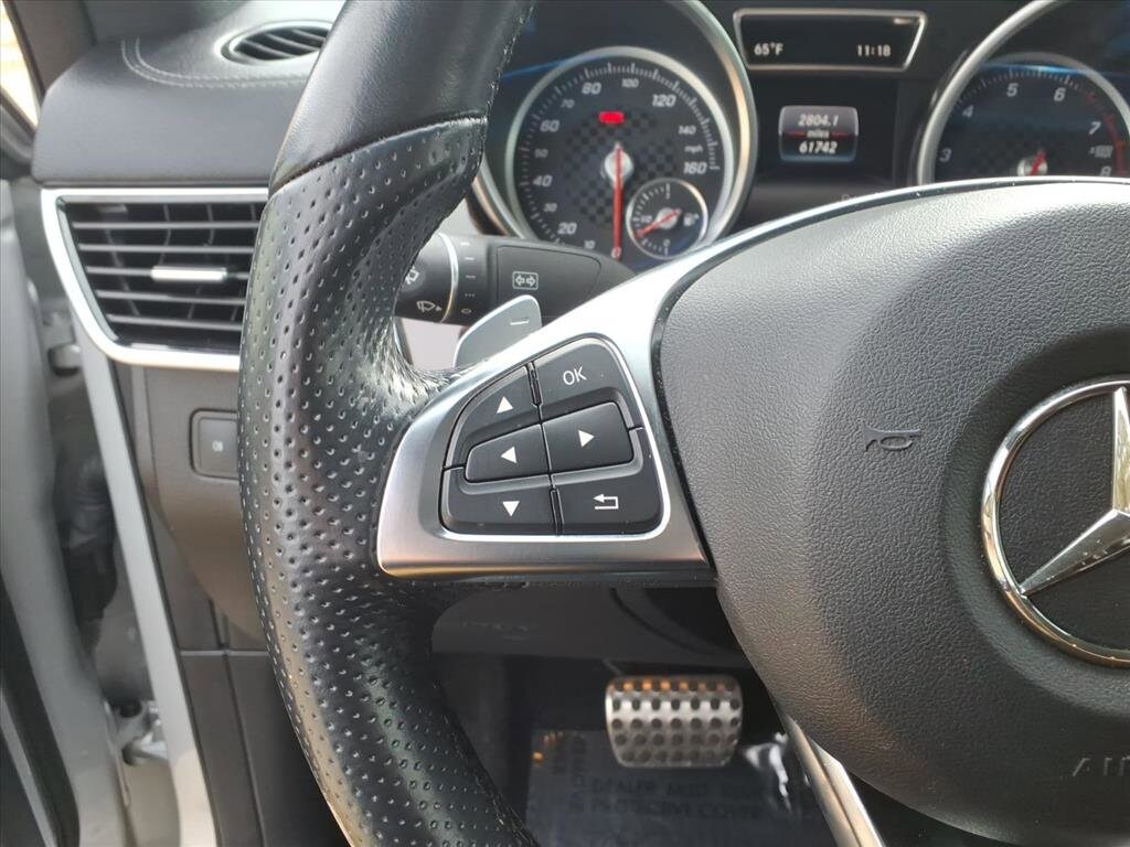Extended Warranty Available, 4-Wheel Disc Brakes, 8 Speakers, ABS brakes, Adaptive suspension, Air Conditioning, Alloy wheels, AM/FM radio: SiriusXM, Anti-whiplash front head restraints, Apple CarPlay, Auto High-beam Headlights, Auto tilt-away steering wheel, Auto-dimming door mirrors, Auto-dimming Rear-View mirror, Auto-leveling suspension, Automatic temperature control, Axle Ratio: 3.69, Brake assist, Bumpers: body-color, CD player, Compass, Delay-off headlights, Driver door bin, Driver vanity mirror, Dual front impact airbags, Dual front side impact airbags, DVD-Audio, Electronic Stability Control, Emergency communication system: mbrace2, Eucalyptus Wood Trim, Exterior Parking Camera Rear, Four wheel independent suspension, Front anti-roll bar, Front Bucket Seats, Front Center Armrest, Front dual zone A/C, Front reading lights, Fully automatic headlights, Garage door transmitter: Homelink, Genuine wood console insert, Genuine wood dashboard insert, Heated door mirrors, Heated front seats, Heated Front Sport Seats, Illuminated entry, Knee airbag, Leather steering wheel, Low tire pressure warning, MB-Tex Leatherette Seat Trim, Memory seat, Navigation system: COMAND® APS, Occupant sensing airbag, Outside temperature display, Overhead airbag, Panic alarm, Passenger door bin, Passenger vanity mirror, Power door mirrors, Power driver seat, Power Liftgate, Power passenger seat, Power steering, Power windows, Premium audio system: COMAND® APS, Radio data system, Radio: COMAND® System w/Navigation, Rain sensing wipers, Rear anti-roll bar, Rear fog lights, Rear reading lights, Rear seat center armrest, Rear window defroster, Remote keyless entry, Roof rack: rails only, Security system, Speed control, Speed-Sensitive Wipers, Split folding rear seat, Spoiler, Sport steering wheel, Steering wheel memory, Steering wheel mounted audio controls, Tachometer, Telescoping steering wheel, Tilt steering wheel, Traction control, Trip computer, Turn signal indicator mirrors, Weather band radio, Wheels: 21" AMG® 5-Twin-Spoke.