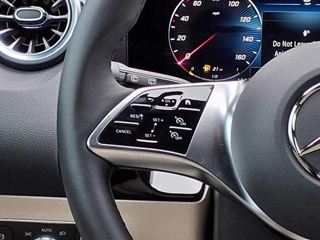 Extended Warranty Available, 4-Wheel Disc Brakes, 6 Speakers, ABS brakes, Air Conditioning, Alloy wheels, AM/FM radio: SiriusXM, Apple CarPlay®/Android Auto®, Auto High-beam Headlights, Auto-dimming door mirrors, Auto-dimming Rear-View mirror, Automatic temperature control, Brake assist, Bumpers: body-color, Child-Seat-Sensing Airbag, Delay-off headlights, Driver door bin, Driver vanity mirror, Dual front impact airbags, Dual front side impact airbags, Electronic Stability Control, Emergency communication system: eCall Emergency System and Active Emergency Stop Assist, Exterior Parking Camera Rear, Four wheel independent suspension, Front anti-roll bar, Front Bucket Seats, Front Center Armrest, Front dual zone A/C, Front fog lights, Front Power Comfort Seats, Front reading lights, Fully automatic headlights, Garage door transmitter, Heated door mirrors, Illuminated entry, Knee airbag, Leather steering wheel, Low tire pressure warning, MB-Tex Upholstery, Memory seat, Occupant sensing airbag, Outside temperature display, Overhead airbag, Overhead console, Panic alarm, Passenger door bin, Passenger vanity mirror, Power door mirrors, Power driver seat, Power Liftgate, Power passenger seat, Power steering, Power windows, Premium audio system: MBUX, Radio data system, Radio: Mercedes-Benz User Experience (MBUX), Rain sensing wipers, Rear anti-roll bar, Rear fog lights, Rear reading lights, Rear window defroster, Rear window wiper, Remote keyless entry, Security system, Speed control, Speed-sensing steering, Split folding rear seat, Spoiler, Steering wheel mounted audio controls, Tachometer, TBD Axle Ratio, Telescoping steering wheel, Tilt steering wheel, Traction control, Trip computer, Turn signal indicator mirrors, Variably intermittent wipers, Wheels: 18" Twin 5-Spoke.