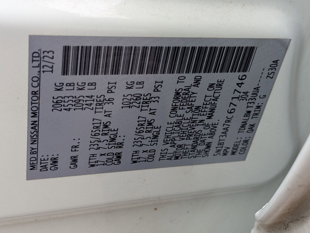 GLACIER WHITE, CHARCOAL, CLOTH SEAT TRIM, [C03] 50 STATE EMISSIONS, [L92] FLOOR MATS W/1-PIECE CARGO AREA PROTECTOR