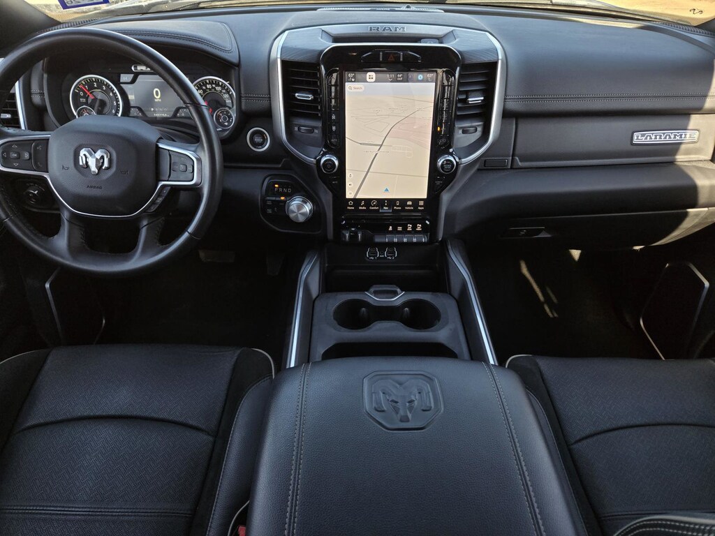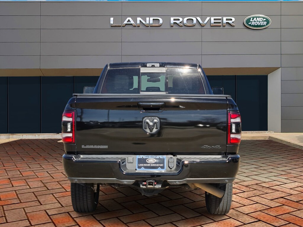 Virtual appointments, Home Delivery, LAND ROVER SHREVEPORT, CONTACT 318-383-4600, 10 Speakers, 12" Touchscreen Display, 2 Way Rear Headrest Seat, 2nd Row In Floor Storage Bins, 4 Way Front Headrests, 4-Wheel Disc Brakes, 4G LTE Wi-Fi Hot Spot, Active Noise Control System, Air Conditioning, Alexa Built-In, Anti-Spin Differential Rear Axle, Apple CarPlay, Auto Adjust In Reverse Exterior Mirrors, Auto Dim Exterior Mirror, Auto High Beam Headlamp Control, Auto Power-Folding Mirrors, Auto-Dimming Exterior Passenger Mirror, Automatic temperature control, Black Exterior Truck Badging, Black Headlamp Bezels, Black Interior Accents, Black Ram Head Tailgate Badge, Black Tail Lamp Bezels, Black Wheel Center Hub, Blind Spot & Cross Path Detection, Body Color Grille Surround, Center Hub, Chrome Exterior Mirrors, Connected Travel & Traffic Services, Connectivity - US/Canada, Disassociated Touchscreen Display, Exterior Mirrors Courtesy Lamps, Exterior Mirrors w/Heating Element, Exterior Mirrors w/Memory, Exterior Mirrors w/Supplemental Signals, Foam Bottle Insert (Door Trim Panel), For Details, Visit DriveUconnect.com, For More Info, Call 800-643-2112, Forward & Reverse Utility Lights, Front Center Armrest w/Storage, Front dual zone A/C, Front LED Fog Lamps, Global Telematics Box Module (TBM), Gloss Black Grille Billets/Accents, Google Android Auto, GPS Antenna Input, GPS Navigation, HD Radio, Integrated Voice Command w/Bluetooth, Laramie Level 1 Equipment Group, LED Reflector Headlamps, LED Tail Lamps, Mirror Running Lights, Navigation System, Night Edition, Off-Road Information Pages, Panic alarm, ParkSense Front/Rear Park Assist System, ParkView Rear Back-Up Camera, Power 2-Way Driver Lumbar Adjust, Power 2-Way Passenger Lumbar Adjust, Power Adjust 8-Way Driver Seat, Power Adjust 8-Way Front Passenger Seat, Power Adjust Mirrors, Power Adjustable Convex Aux Mirrors, Power Adjustable Pedals w/Memory, Power driver seat, Power Heated Fold Telescopic Mirrors w/Memory, Power Telescoping Mirrors, Quick Order Package 2GH Laramie, Radio: Uconnect 5 Nav w/12.0" Display, Rain Sensitive Windshield Wipers, Rear Power Sliding Window, Rear Window Defroster, Remote Tailgate Release, Selectable Tire Fill Alert, SiriusXM Radio Service, SiriusXM w/360L, Sport Performance Hood, Tow Hooks, Trailer Tow Pages, Wheels: 18" x 8.0" Polished Aluminum, Wheels: 20" x 8.0" Black Painted Aluminum.
