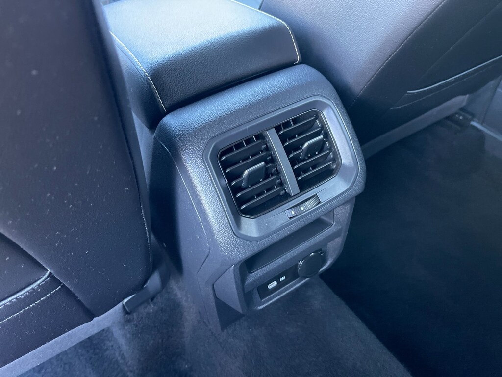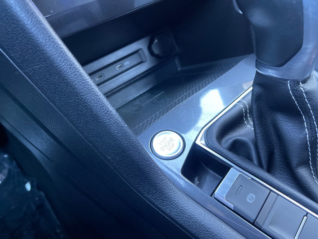 Features include a 2.0L turbocharged engine, R-Line Black appearance package, and panoramic sunroof that adds an open, upscale feel to the cabin. Additional highlights include Apple CarPlay and Android Auto, digital cockpit display, heated front seats, leatherette seating surfaces, blind spot monitoring, rear cross-traffic alert, adaptive cruise control, keyless entry with push-button start, power liftgate, premium black alloy wheels, and advanced Volkswagen safety technology.